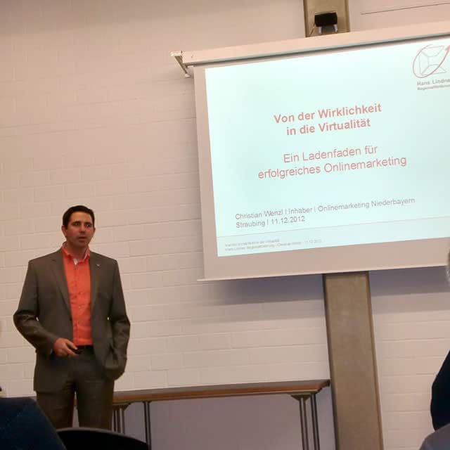 Im November und Dezember 2012 veranstaltete die Hans Lindner Regionalförderung in Straubing eine 6-tägige Seminarreihe, die sich an Unternehmensgründer wandte. Junge Firmengründer wurden in die Grundlagen der Existenzgründung bis hin zu den Geheimnisse des Marketings und der Kundenbindung eingeweiht. Schwerpunkt im letzten Teil des Seminars war das Onlinemarketing. Außerdem ging es um Social Media und den perfekten Internetauftritt.